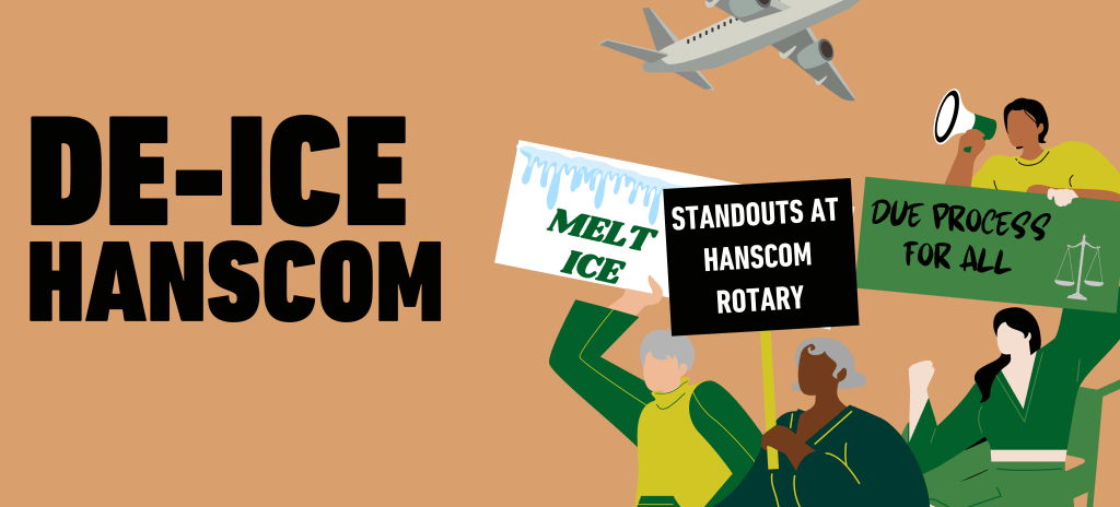 Peaceful standouts with the goal of eliminating ICE transport flights from Hanscom Field.