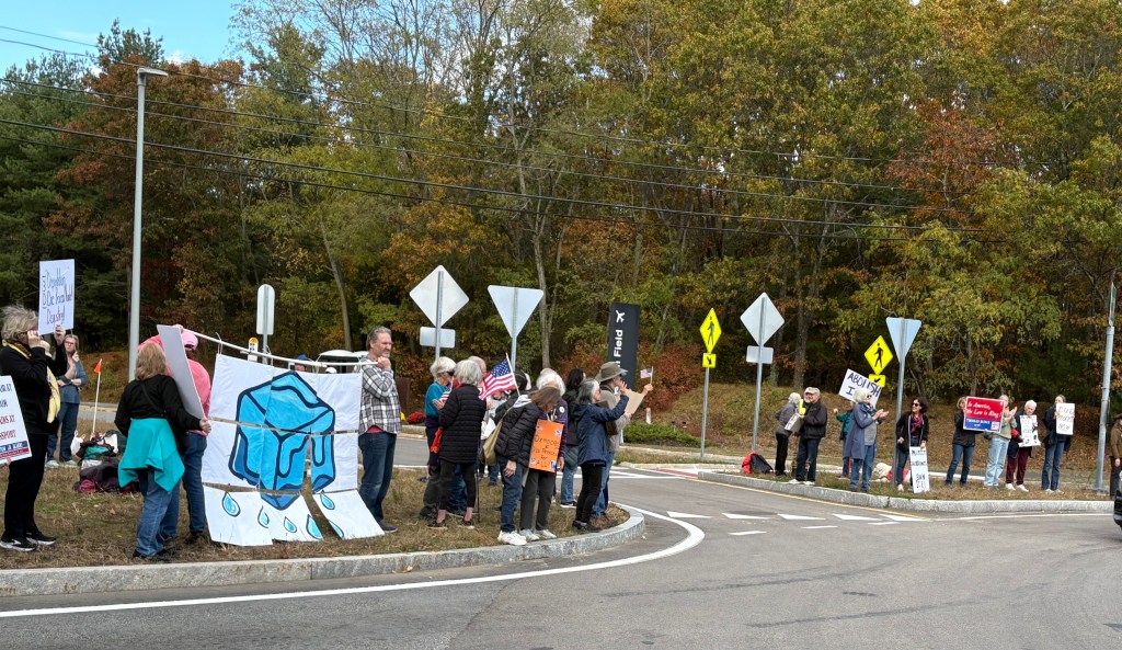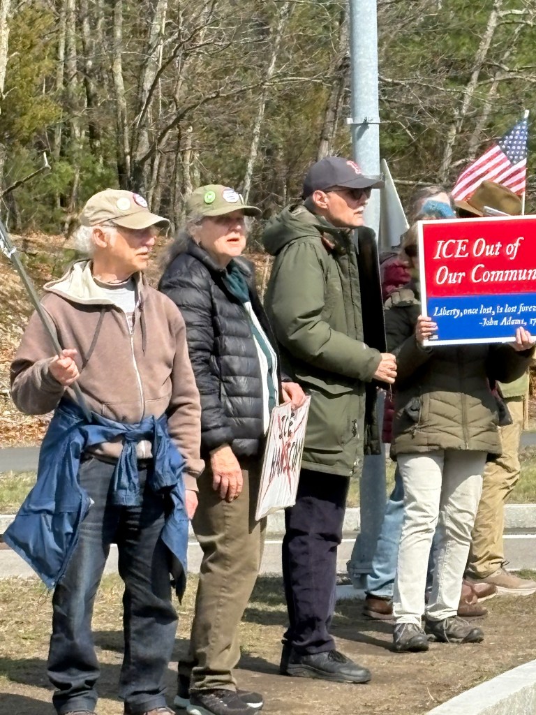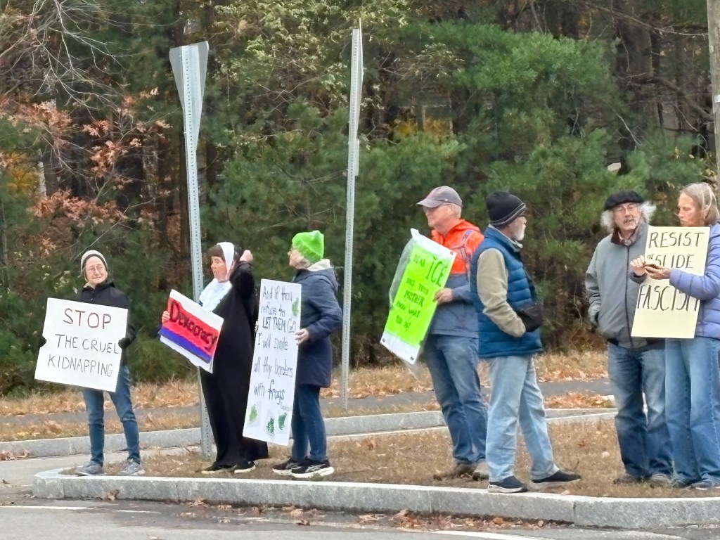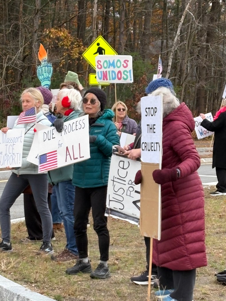 October 24, 2025: Week 1: 70 protestesters came out to stand at the entrance to ICE’s New Engaland deportation center at Hanscom Airfield. We will be here as long as ICE is flying our neighbors out of their communities through this airfield