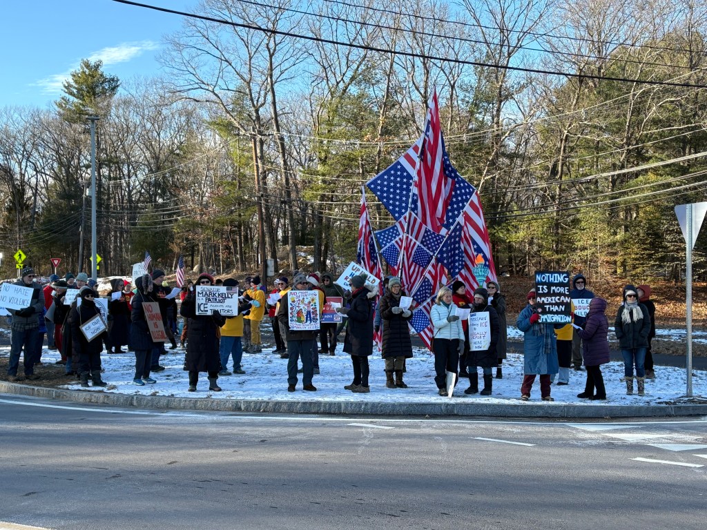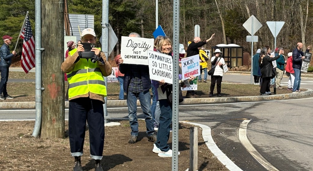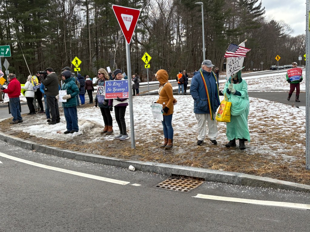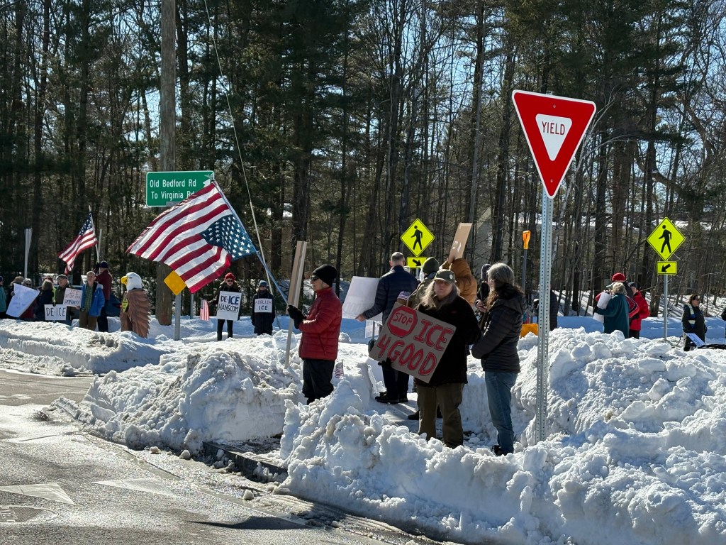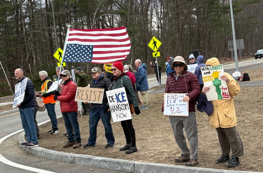 October 24, 2025: Week 1: 70 protestesters came out to stand at the entrance to ICE’s New Engaland deportation center at Hanscom Airfield. We will be here as long as ICE is flying our neighbors out of their communities through this airfield