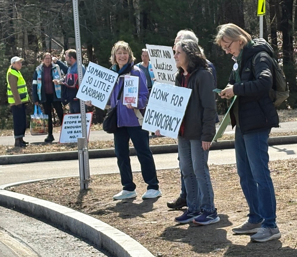 April 3: The clouds parted for us and we enjoyed the beautiful sunshine this week. 60 devoted activists were greeted by dozens of cars with their horns honking and drivers waving. Our newly refashioned member-curated playlist kept everyone’s spirits up.