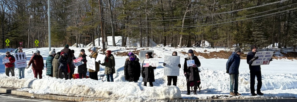 Jan 9:Winter is setting in, but cold and a little snow don’t deter us from telling ICE that they are acting illegally, and we don’t like it!